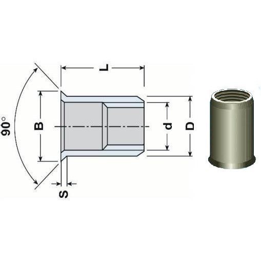 Blindnietmutter OFFEN M8x16 A4 EDELSTAHL Kleiner Senkkopf, Rundschaft (s= 0.5-3.0 mm)